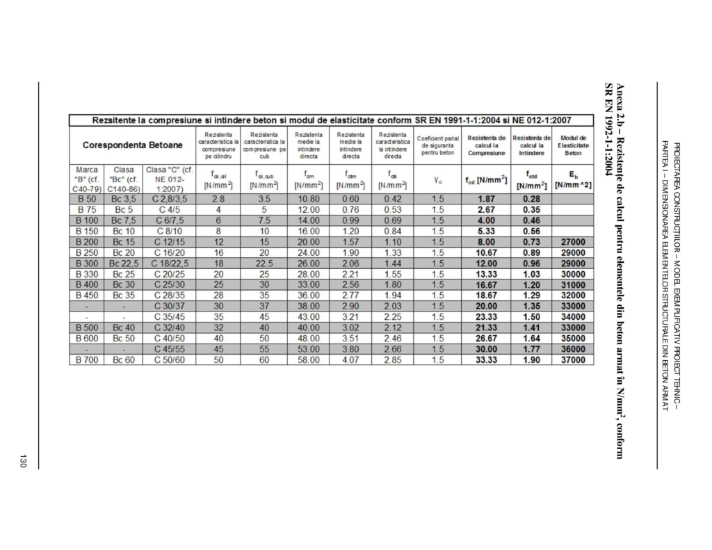 Recomandarea este ca să nu se folosească betoane de clasă mai mică de C16/20 iar la structurile mai înalte de 4 niveluri betoane inferioare clasei C25/30.