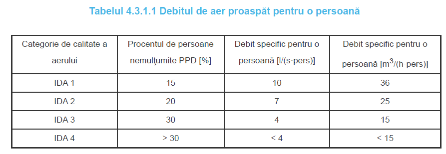 Pentru încăperile civile nerezidenţiale cu prezenţa umană, debitul de ventilare (cu aer proaspăt exterior) se