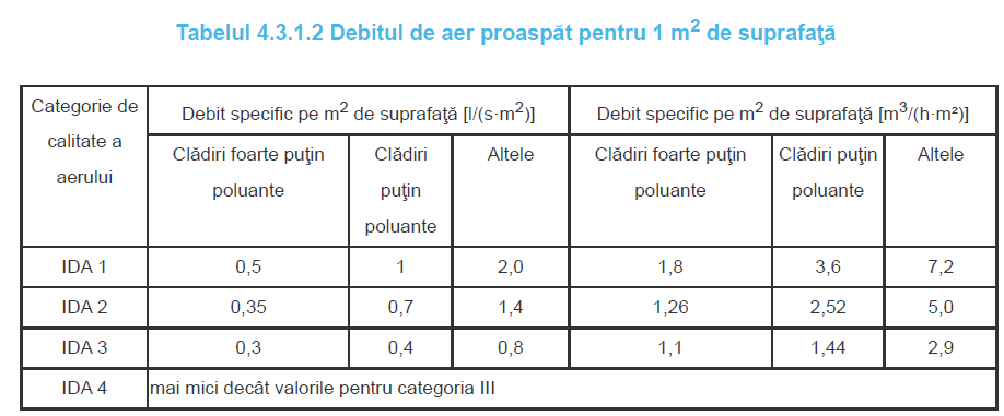 qb - debit specific de aer proaspăt pe unitatea de suprafață m3/(h m2)
